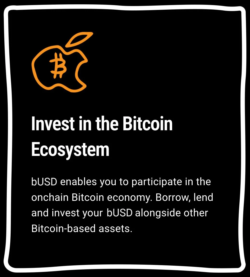 Bound’s bUSD is an essential building block for orchestrating stablecoin liquidity within Bitcoin’s growing ecosystem of builders, users and investors globally - giving them access to a diverse basket of reliable and stable collateral from several different sources